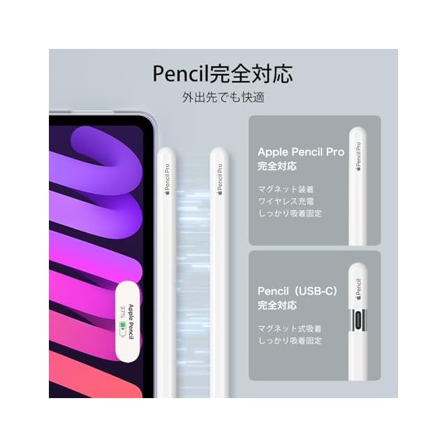 【Pencil Pro/USB-C対応】:Pencil ProとUSB-Cを完全に対応し、マグネット充電用のくぼんだサイドの溝と、Pencilをしっかりと固定するマグネットクラスプを備えています。