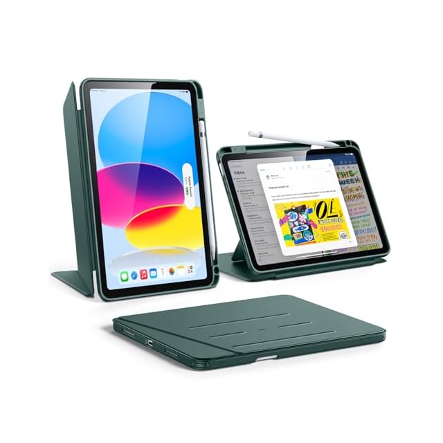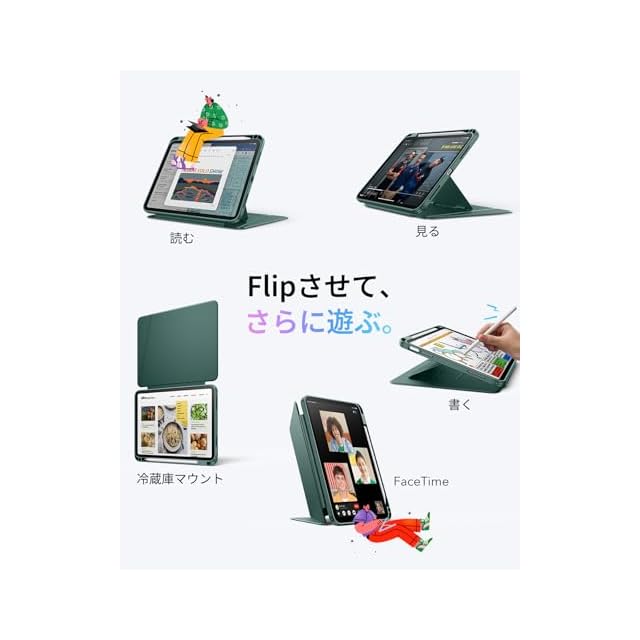 ESR iPad 11世代 ケース A16 iPad 第10世代 / 第11世代 専用カバー (2022/2025モデル) ペン収納 耐衝撃 縦横スタンド 自動ウェイク/スリープ Pencil/USB-C対応 マルチアングルケース 11インチ/10.9インチ Flipシリーズ グリーン | つむぎ屋