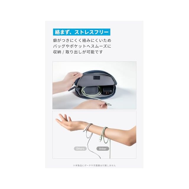 絡まず、ストレスフリー:癖がつきにくく絡みにくいため、バッグやポケットへスムーズに収納 / 取り出しが可能です。