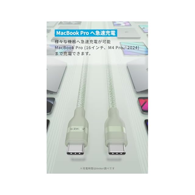 Anker USB-C & USB-C ケーブル (1.8m, 240W, 高耐久ナイロン) USB PD対応 iPhone 17 / 16 / 15 MacBook Pro iPhone Galaxy iPad Pro/Air MacBook Pro/Air 各種対応 グリーン | つむぎ屋