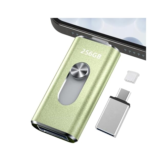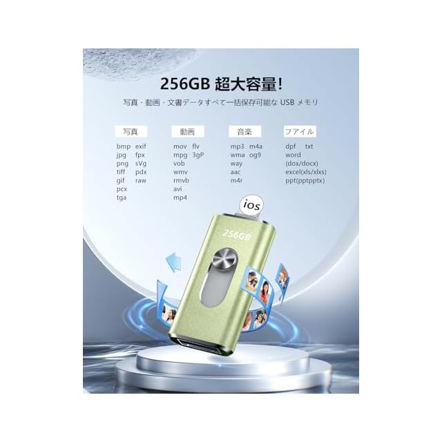 256GB usbメモリ【アプリ不要・アルバムから写真保存】4in1プッシュ型 Phone対応 スマホ携帯 高速 データ保存 バックアップ iOS/Type-C/USB/Micro USBフラッシュメモリ 外付けストレージ スライド式 容量不足解消 usbメモリ!256GB Green