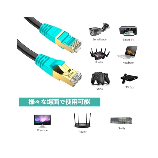 互換性:両端はRJ45コネクタで特に設定不要、接続は超簡単、インターネットルータ、コンピュータルーム、データセンター、セキュリティ監視、スマートテレビ、POE電源、PS2、PS3、PS4、PS5、RJ45プラグを搭載したゲームボックス等に適用します