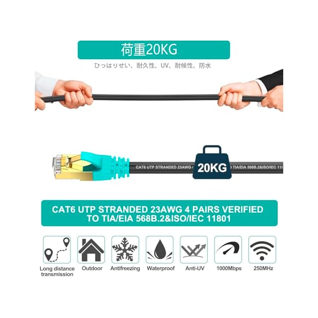高速データ転送:CAT6イーサネットケーブルは最大1000Mbpsのデータ転送速度(CAT5eの10倍)と250MHzの帯域幅(CAT5eの2.5倍)を実現し、高速で安定したネットワーク環境を提供します。