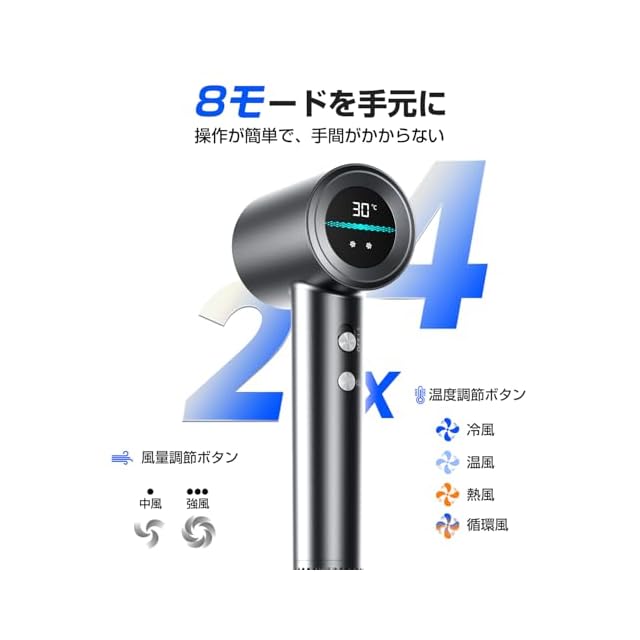 「8つの魔法モード」で究極の髪質コントロールが可能に ドライヤー 人気 ランキング常連のこのヘアドライヤーは、AI 温度制御 ×2 段風速で「季節・髪質・シーン」に最適なドライを実現: クールモード(30℃):適度な風量で朝の寝ぐせ解消、頭皮クールダウンで夏のベタつき対策; ウォームモード(60℃):冬の黄金ドライ速度、根元立ちアップ ; ホットモード(77℃):ドライヤー 速乾の核心、独自断熱ナノコートで熱ダメージ - 80%; クールヒート AI モード:30℃⇄60℃自動切替、キューティクル自然閉鎖で絹肌風つや。