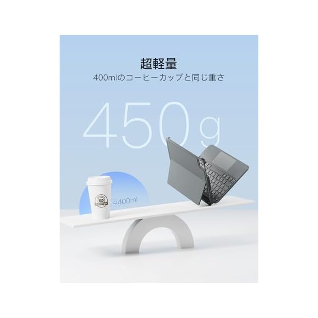 超薄軽量:ipad a16 キーボードの厚さはわずか7.6mm(コイン3枚重ねた厚さ)、重量はたった450g。他社フル機能キーボードより200g軽量です。通勤時はビジネスバッグに詰め込み、出張時はリュックに入れてもスペースを取らず、片手で簡単に持ち運べます。地下鉄で急な文書修正やカフェでの待ち時間にメール返信、モバイルワークがこれまで以上に楽に