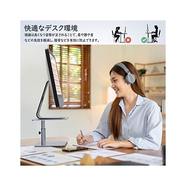 【高さ調整●作業効率アップ】モニタースタンドは支柱のネジ一つで高さを11~17cmまで稼働します。お使いの机と椅子の高さにあわせて最適な目線にディスプレイの高さを調整することができます。高さが目線に調節できることにより、姿勢がよくなって腰と首の痛みが解消でき、テレワークが快適になり、作業効率も格段に上がります。高さ調整中ネジ締め不足なら、安定性に影響があるのでご注意ください。