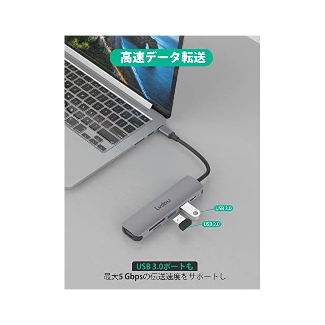『6-in-1 typec ハブ』:HDMI(4K 60Hz)ポート*1+USB3.0/USB2.0ポート*1+急速 PD充電ポート(最大100Wまで急速充電)*1+SD&TF カードスロット(最大速度480mbps)*1が搭載されています;使用簡単、挿すだけではない。足の問題も解消してくれます ●便利、コンパクトな固定で、簡単に緩まない、作業効率を向上させることができます。