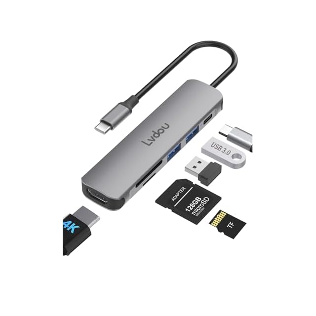 2025高機能版 USB C ハブ 6-in-1 Lvdou アダプタ|100W PD充電対応・4K 60Hz HDMI・MicroSD/SDカードリーダー搭載|MacBook Pro/Air, iPad Pro, iPhone 15/16, Surface Pro, Switch2/Switch, Galaxy Book, Chromebook対応 ノートPC/タブレット用 | つむぎ屋
