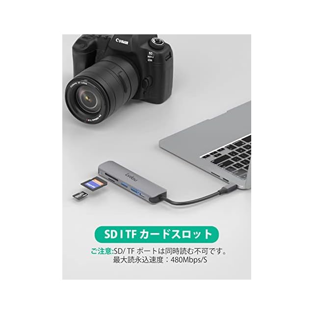『SDカード、USB3.0対応』:USB3.0/2.0ポートが付属しますので、最大5Gbpsの伝送速度をサポートし、データとHD動画を数秒で転送できます。 SD カードとTF カードのスロットを搭載し、最大読込み速度は480mbpsです、動画やデータのスムーズな伝送が可能です、ほとんどのSDカードに対応しています。 ご注意:SD/ TF ポートは同時読む不可です。