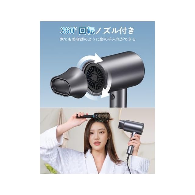 【2025革新強化版】ドライヤー 大風量 ヘアドライヤー 速乾 2 億個高濃度マイナスイオン 髪質改善・静電気防止・抜け毛緩和 3 段階温度調節 (冷風/熱風) 45dB 低騒音 折り畳み携帯可能 過熱保護機能・ノズル付き 家庭用/旅行用/出張 ヘアサロン対応 祝日プレゼント (グレー)