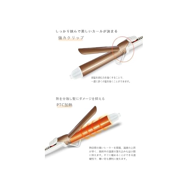 【髪を摩擦から守る】摩擦を抑えた髪に優しい「セラミックコーティングプレート」を採用して、キューティクルを傷めず、引っ掛かりのないストレスフリーなスタイリングに可能です。操作性&質感アップを実現した、プロのスタイリストから高い支持を得る。髪をいたわりながらツヤのあるキレイなカールをつくります。 巻き方を変えることでさまざまなカールが作れて、毎日違うヘアアレンジを楽しむことができます。