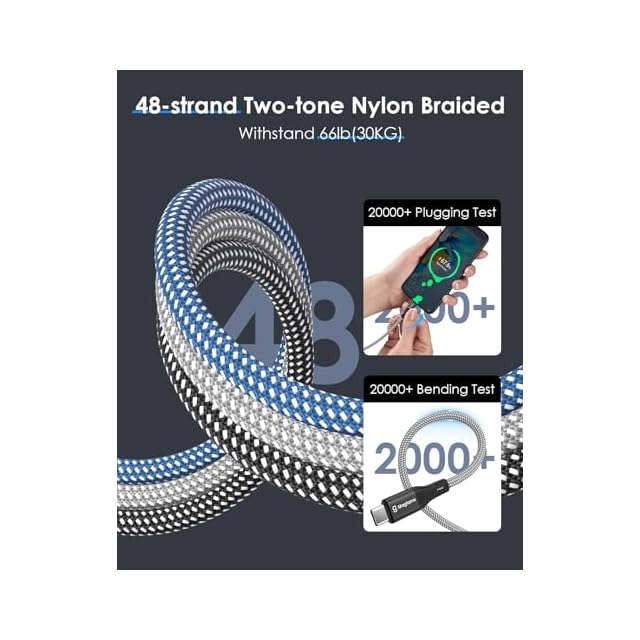 高耐久48番手二重ナイロン、3次元編み込み技術:本usbタイプcケーブルは高耐久48番手の二重ナイロン4層構造を高密度編組で耐久力に強化しています。更に 3次元の編み込み技術により断裂を防ぐタイプc usbケーブルです。