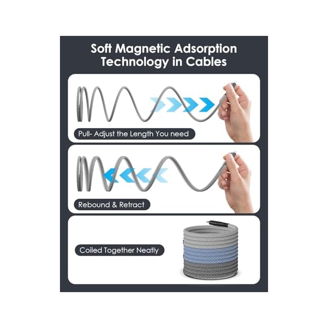 磁力吸着絡まり防止、特許取得済み:ケーブル全体に均一なマグネット内臓でケーブル同士をくっ付けることができるので、マジックバンド等を使わなくても形状記憶によってそのまま丸めて保管が可能なusb a cケーブルです。この特許取得済の独自技術は当社の先進性、独自性、開発力が国内外の先進企業も認めた。