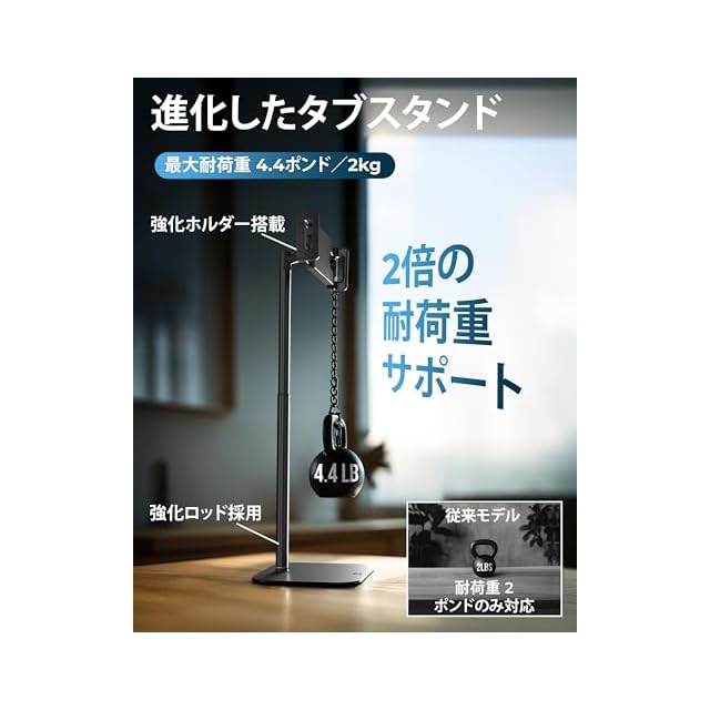 耐久性のあるデザイン - メタルベース、ロッド、プレミアムABS樹脂を使用した高さ調節可能なiPadスタンドホルダー。EVAパッド入りの滑りにくい金属製ベース。理想的なiPad Proスタンド。3年。