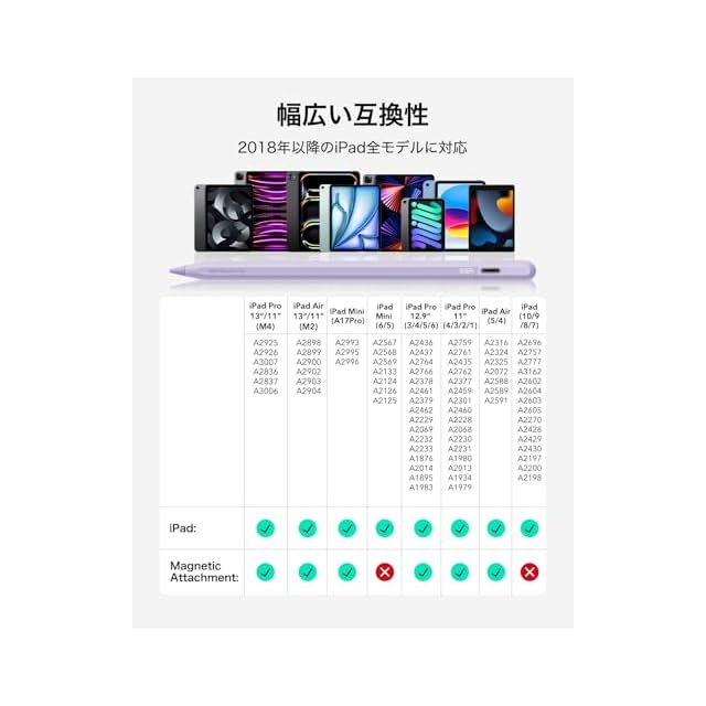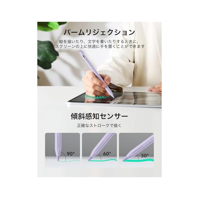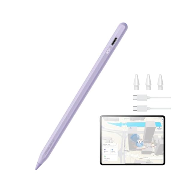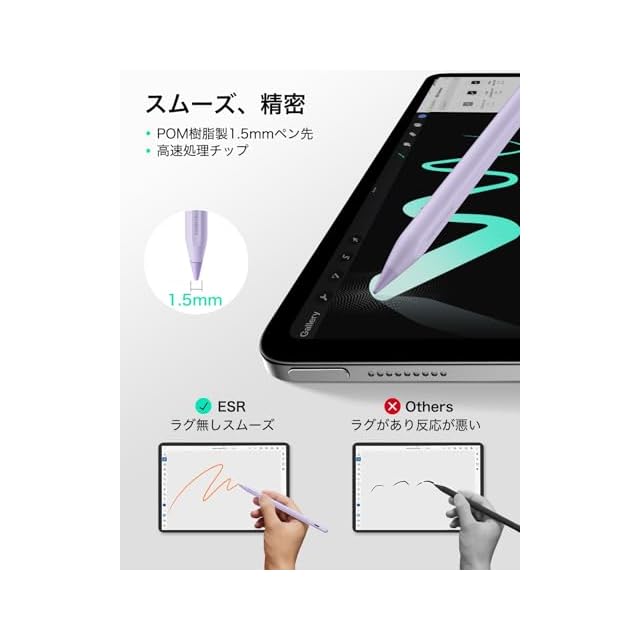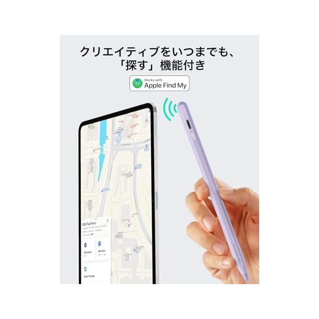 ESR ipad ペン 用 Find My「探す」機能付きスタイラス 2025-2018, iPad Pro 13/12.9/11-M4 iPad Air 5/4/13/11-M2, iPad 11/10/9/8/7 & iPad Mini 6/5用Find My「探す」機能と傾き感知機能付きipad ペンシル Pro, パープル | つむぎ屋