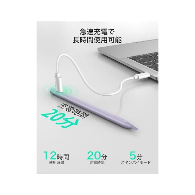 【急速充電】:Type C充電器を接続すると、iPad Pencilが30分以内にフル充電可能なため、充電時間を節約できます。