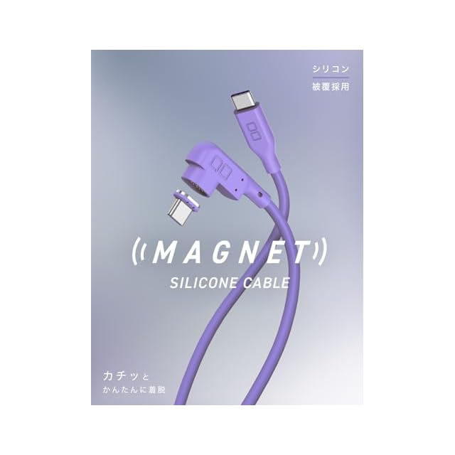 CIO マグネットシリコンケーブル 100W対応 USB Type-C 磁石で脱着 防水規格 IPX5対応 iPhone 17 / 16 / 15 タイプC ケーブル (L字,パープル, 1m) | つむぎ屋