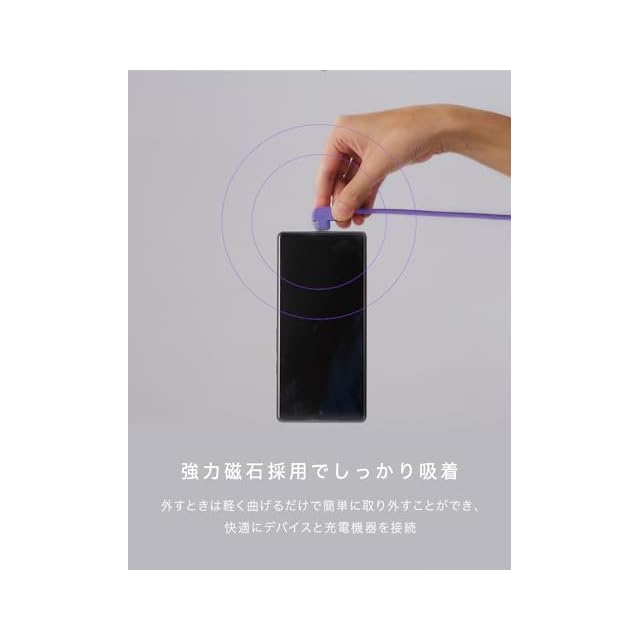 【カチッとくっつくデータ転送対応マグネット充電ケーブル】iPhone 17 など、スマートフォン や USB type-C ポート搭載機器に ケーブル を近づければ磁石でカチッと吸着して充電。そんな圧倒的な手軽さと利便性を持った充電ケーブルです。データ転送速度は最大480Mbpsを実現し、写真や動画・音声等のデータを素早く転送することが可能です。