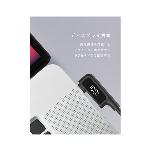 【充電出力が確認できるケーブル】充電速度をリアルタイムで確認できる液晶ディスプレイを搭載。「45W」「65W」といった最大100Wまでの充電出力状況や、iPhone充電時に「PD」といった急速充電表示が出るなど、本来見えないものが見え、心をくすぐってくれます。