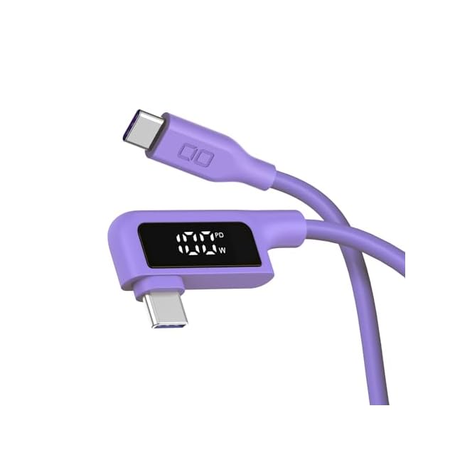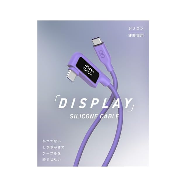 CIO 柔らかいシリコンケーブル 液晶ディスプレイ搭載 USB type-C 充電ケーブル 100W対応 iPhone 17 / 16 / 15 タイプC usb type c to c【液晶部に保護フィルム有】(1m, L字, パープル) | つむぎ屋