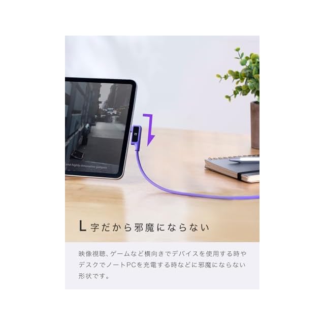 【便利で端子に優しいL字コネクタ】L字コネクタはスマホゲームや動画視聴、ノートパソコンの充電時にケーブルの取り回しが向上し、省スペース化にも便利です。