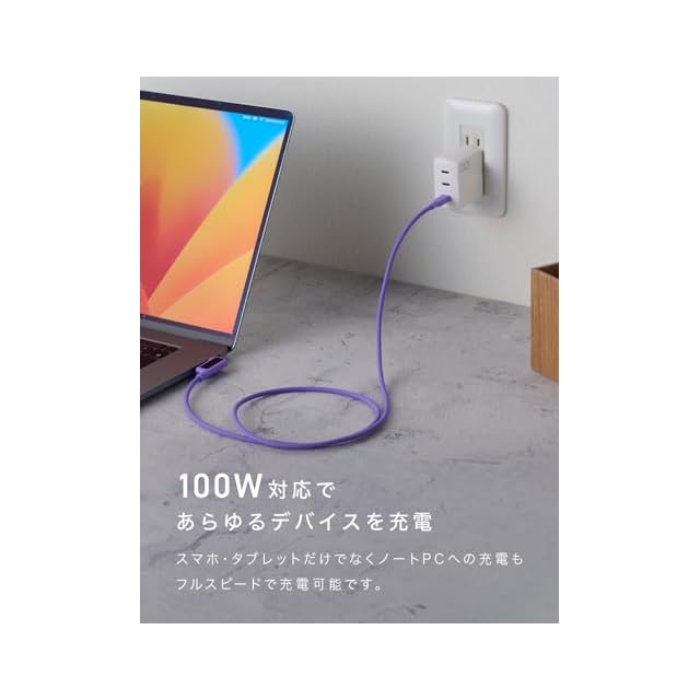 【PD 急速充電 100W 対応で様々な機器を安定して充電】100Wの高出力やUSB-PDにも対応するケーブルを採用しているので、スマホだけではなく、ノートPC (MacBook Pro / Surface / Lenovo など)もらくらく充電可能。※100W急速充電には100W出力以上に対応したACアダプタが必要となります。お持ちでない方はCIOが販売する充電器がおすすめです。