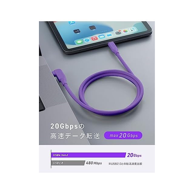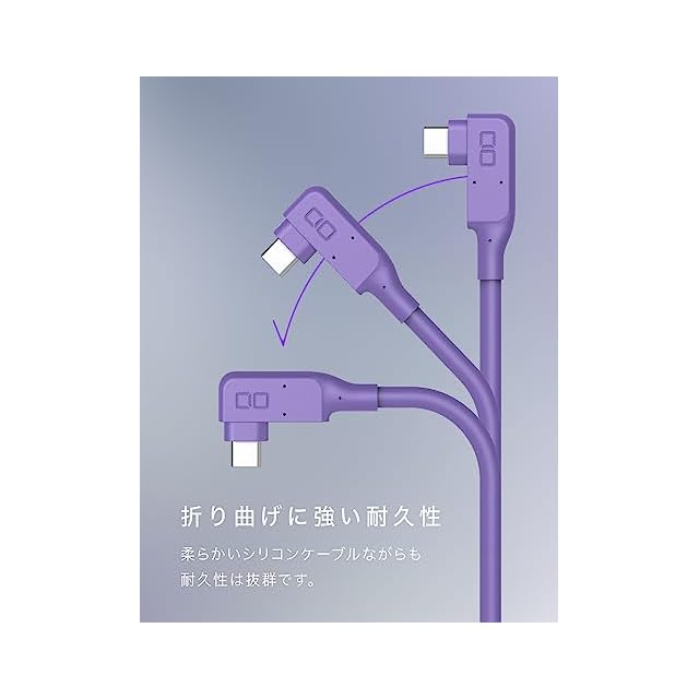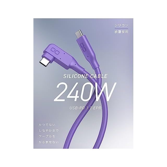 CIO シリコンL字ケーブル USB Type-C ケーブル 240W L型 急速充電 絡まない 90度 USB-C 1m 直角 高速データ転送 20Gbps 4K 映像出力 USB4.0 Gen2 PD EPR MacBook Pro iPad Android Galaxy Switch パープル | つむぎ屋
