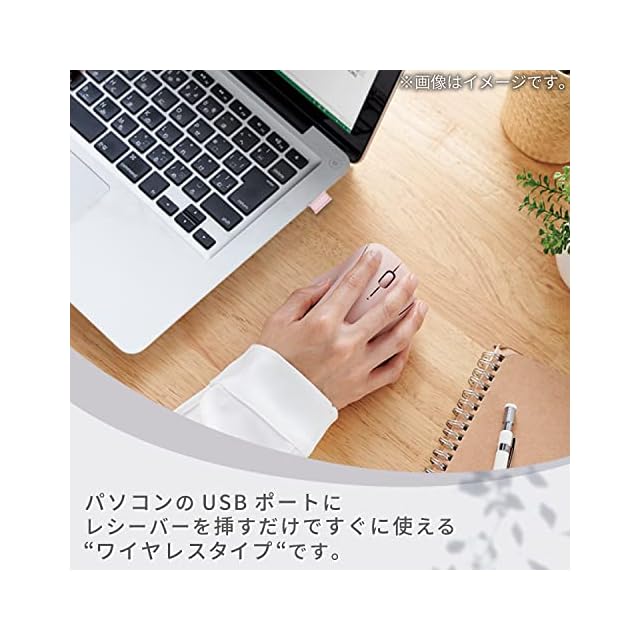 パソコンのUSBポートにレシーバーを挿すだけで、すぐに使用できるワイヤレスタイプです。