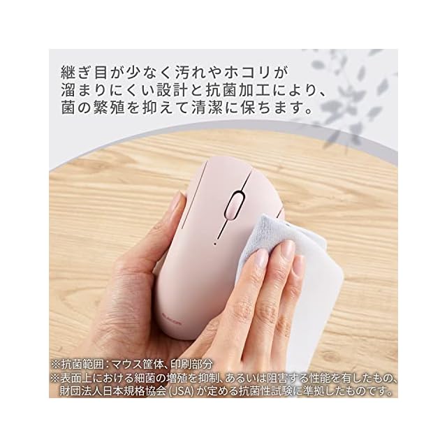 抗菌加工により、マウスの表面に付着した菌の繁殖を抑えて清潔に保ちます。(抗菌範囲:マウス筐体、印刷部分)