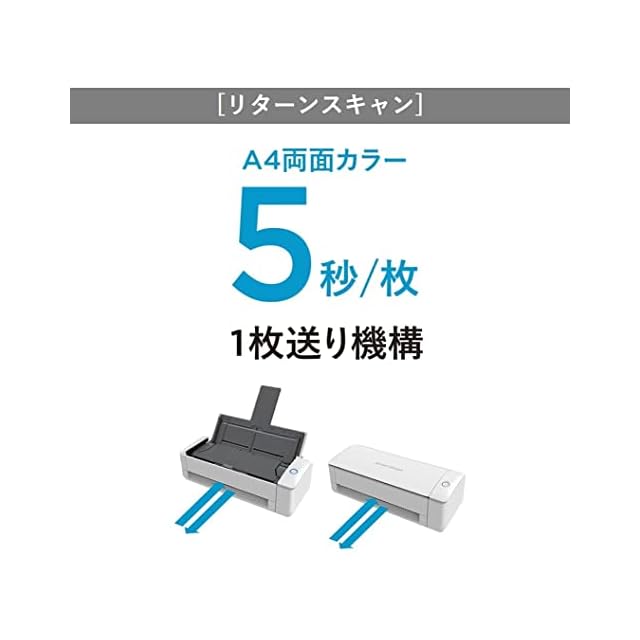 原稿をスキャナー上部から給紙する「Uターンスキャン」では、A4カラー両面原稿を、毎分30枚・60面で連続スキャン。最大20枚までまとめてセットでき、連続スキャンに最適です。従来機種S1300iより大幅に高速化し、驚くほど「カンタン」、「スピーディー」に書類を電子化します。