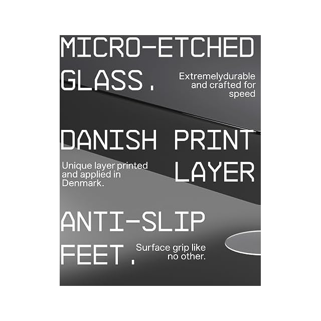 一生使える: 入念にテストされ、特に 620 °C で強化された表面がコーティングされていないハイエンドの安全ガラスを製造しています。ガラスの品質により、マウスパッドは最小限のお手入れで一生使えるように作られています。