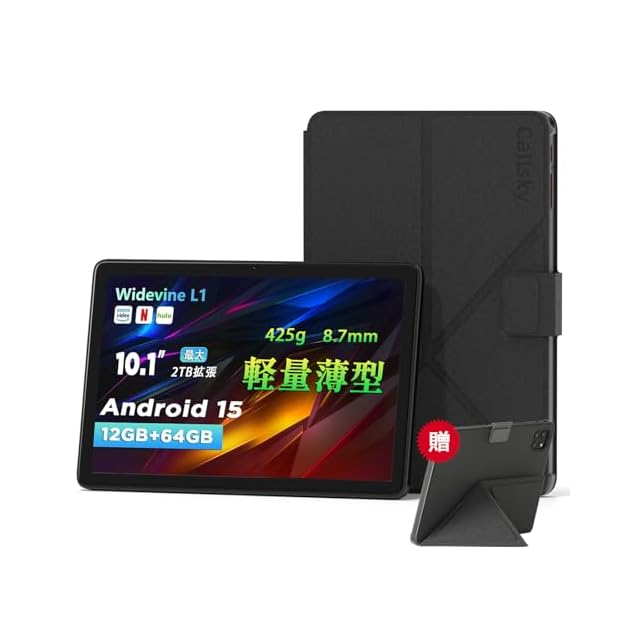 2025新登場·Android 15 タブレット - タブレット 10インチ Wi-Fiモデル、12GB+64GB+2TB拡張、ケース付き、防眩光フィルム、1280*800 Incell IPS画面、アンドロイド15、8コアCPU、Widevine L1対応+6000mAh+Type-C+GMS認証、Callsky Wi-Fi 6+BT5.4+無線投影+画面分割、薄型軽量tablet