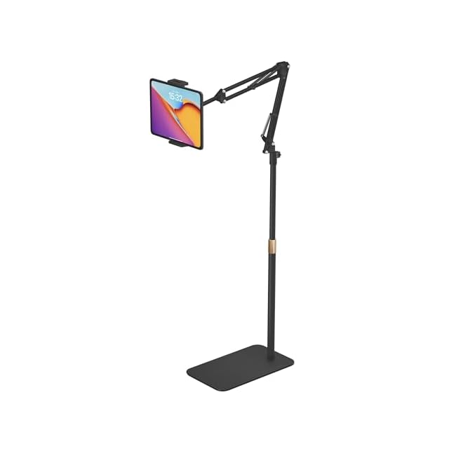 タブレット スタンド 伸縮式フロアスタンド iPad アーム 床置き 寝ながら 50-150CM高さ調整 約2.0KG土台 角度調整 4.7-15.6インチ対応 360°回転 土台強化 下垂防止 スマホ/タブレット/モバイルモニタ対応(ブラック) | つむぎ屋