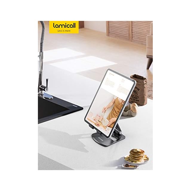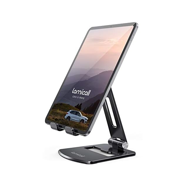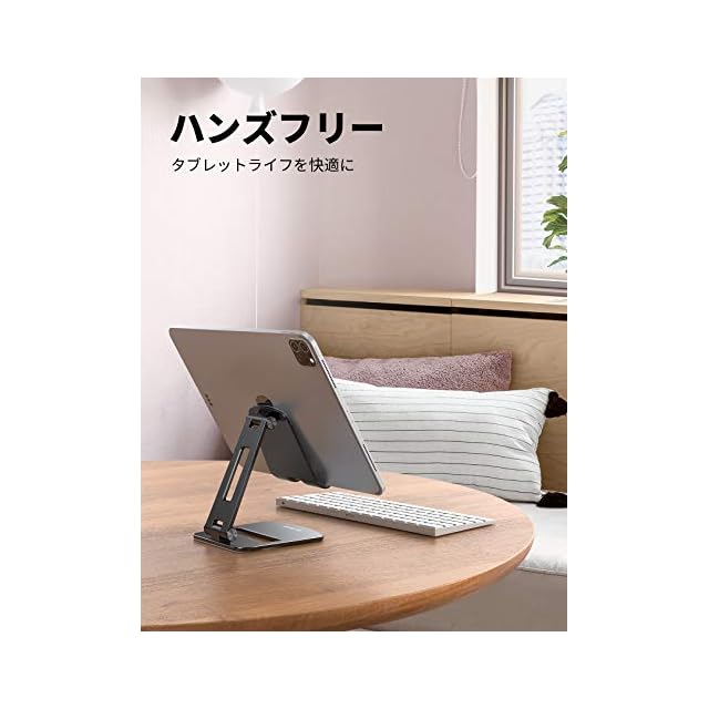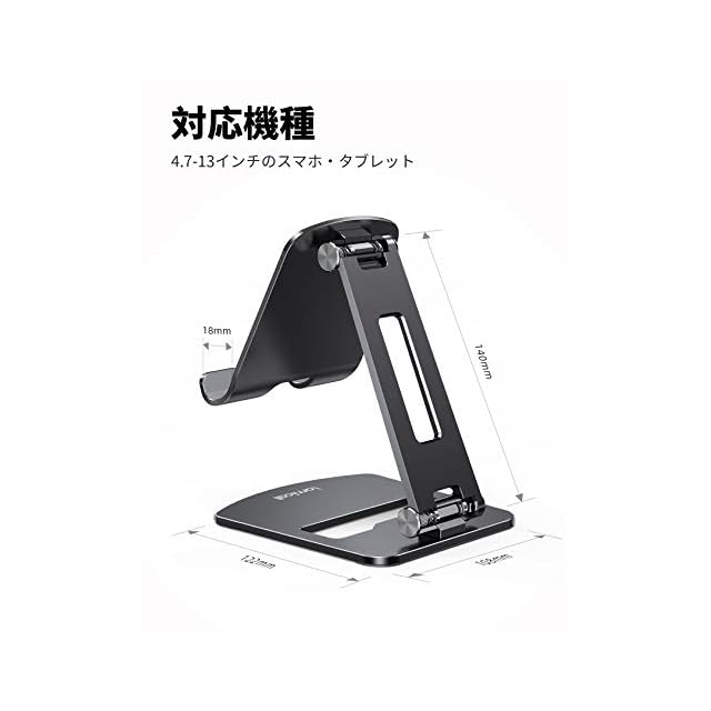 折り畳み式 タブレット スマホ 兼用 スタンド ホルダー 角度調整 Lomicall iPad用 stand : アルミ 合金製 卓上 縦置き 横置き すたんど タブレット 置き台 YouTube 動画 テーブル デスク 持ち運び タブレット対応 4~13 インチ ipad 10 第十世代 ipad pro mini Air android huawei Galaxy に対応 - ブラック
