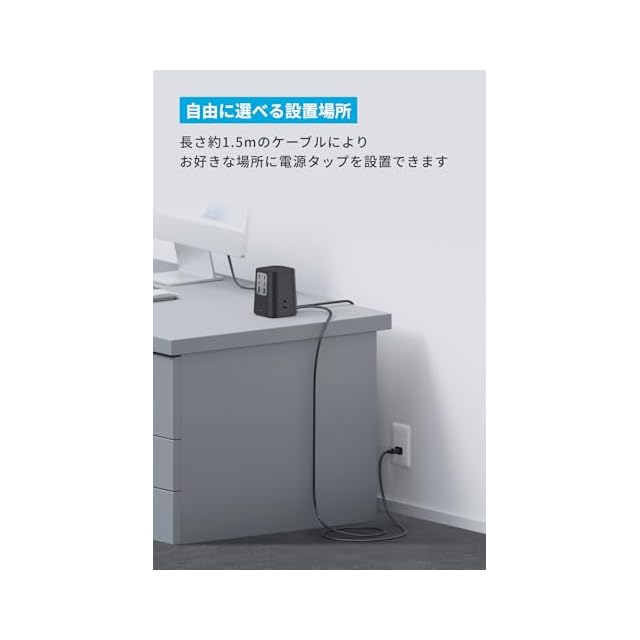 自由に選べる設置場所:長さ約1.5mのケーブルで、お好きな場所に電源タップを設置できます。