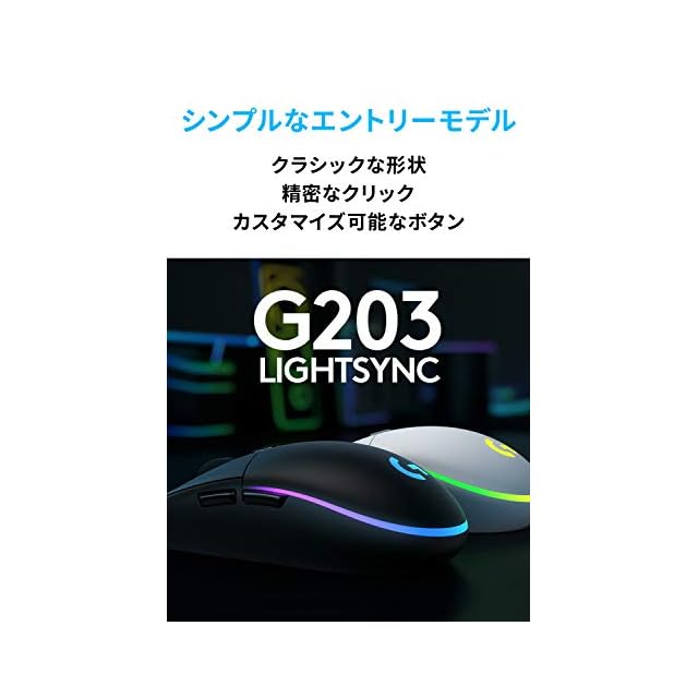 Logicool G ゲーミングマウス G203 有線 ゲーミング マウス USB 接続 G203-BK 軽量 85g LIGHTSYNC RGB 6個プログラムボタン ブラック PC windows mac 国内正規品 【 ファイナルファンタジー XIV 推奨モデル 】 | つむぎ屋