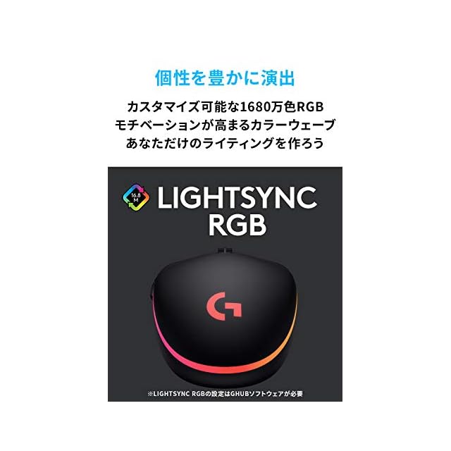 【1680万色RGB】LIGHTSYNCテクノロジーとG HUBにより、RGBライトを約1,680万色から選んでカスタマイズ。セットアップをパーソナライズしたり、他のGギアと同期も可能