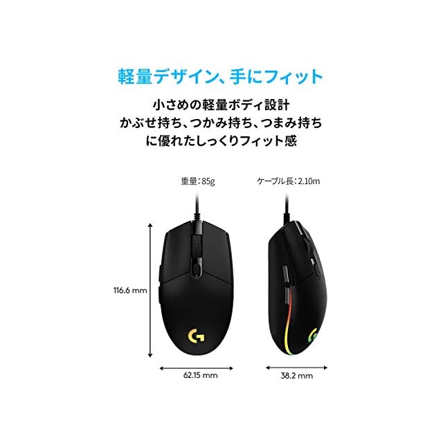 【進化したクラシック左右対称デザイン】世界中多くのゲーマーとeSports選手に愛された名機種G100sのデザインを引継ぎながら、85gの軽さ、250kmの耐久性と持ちやすさに改良した。