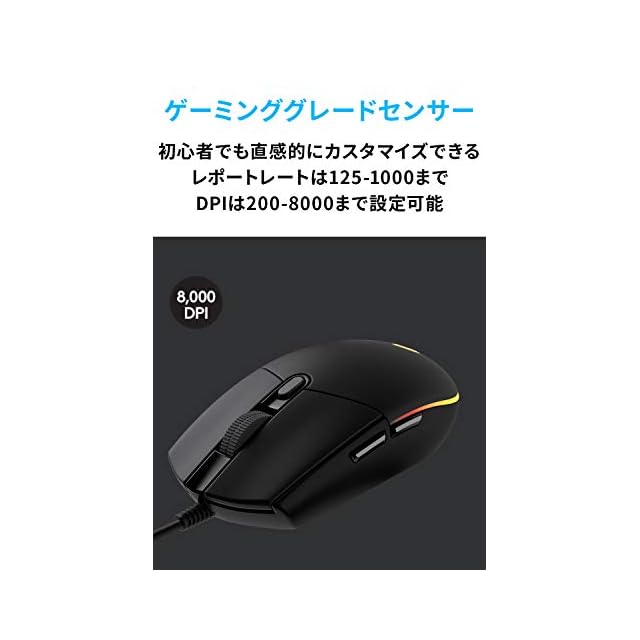 【Logicool G G203 有線ゲーミングマウス】8,000DPIの高性能センサーを搭載したG203はエントリー向け高性能ゲーミングマウス。