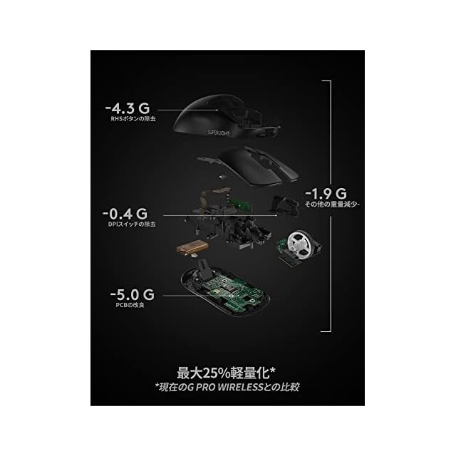 Logicool G PRO X SUPERLIGHT ワイヤレス ゲーミングマウス G-PPD-003WL-BK 軽量 63g未満 LIGHTSPEED HERO 25Kセンサー POWERPLAY 無線 充電 対応 ゲーミング マウス ブラック PC windows 国内正規品 | つむぎ屋