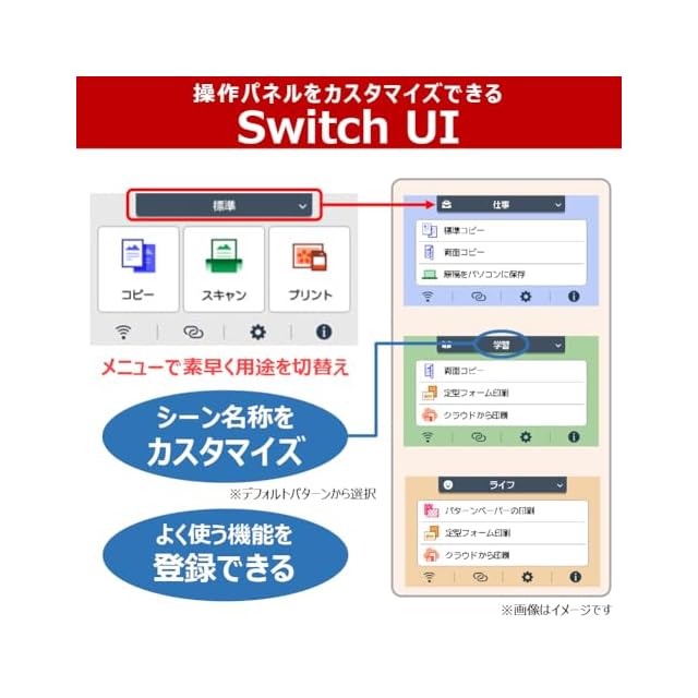 操作・その他:4.3型カラータッチ液晶、Switch UI、1プッシュコピー、自動両面印刷、USB、無線LAN