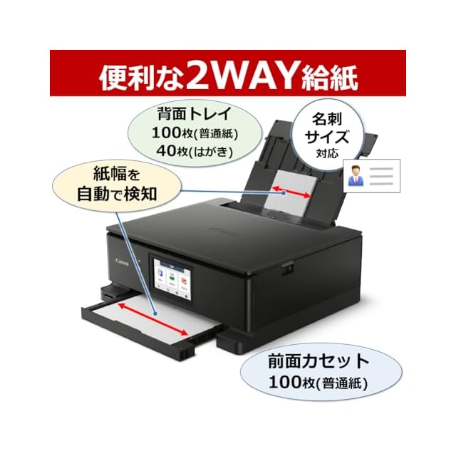 給紙:2WAY給紙 背面トレイ(A4普通紙最大100枚) &前面カセット(A4普通紙最大100枚)
