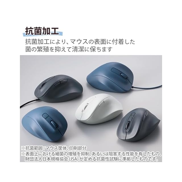 抗菌加工により、マウスの表面に付着した菌の繁殖を抑えて清潔に保ちます。(抗菌範囲:マウス筐体、ホイール部分)