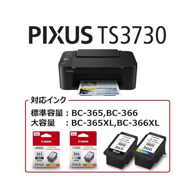 【New】キヤノン Canon プリンター A4 インクジェット複合機 TS3730 BLACK Wi-Fi対応 テレワーク 対応インクBCI-366/365シリーズ 【2024年秋冬モデル】 | つむぎ屋