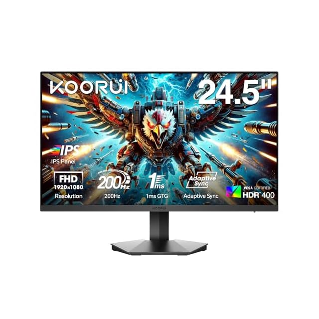 KOORUI ゲーミングモニター 24.5インチ IPS 200Hz 1ms GTG HDR400 非光沢 フルHD 90%DCI-P3ブルーライト軽減 HDMI DisplayPort Adaptive Sync VESA対応 G2511P | つむぎ屋