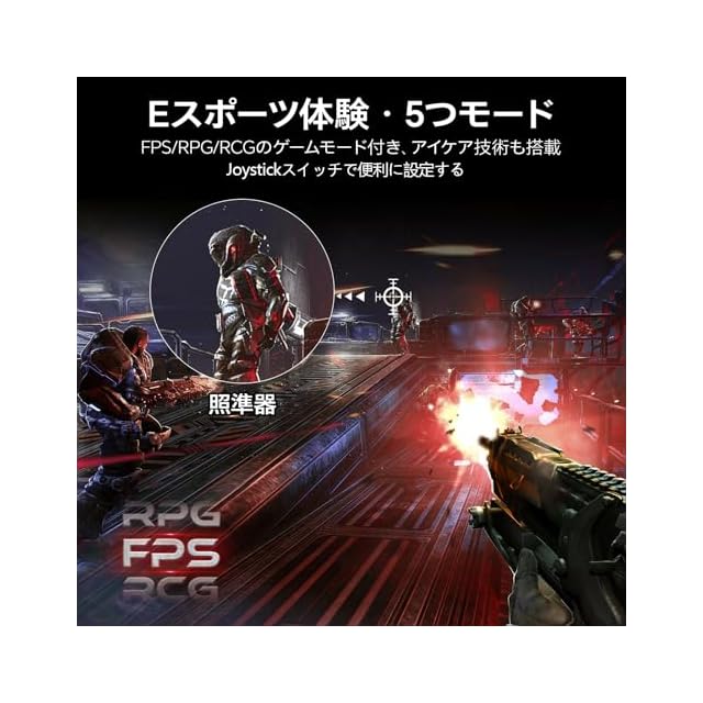 優れた機能:-5~20°傾き調整、ブルーライトカット/RPG、FPS、RCGゲームモード付きゲーミングディスプレイ。ボタンスイッチでゲームモードと明るさなどのセッティングが利用可能、スピーカー非搭載