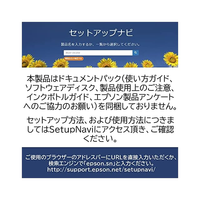 ドキュメントパック非同梱モデル。セットアップと使用方法につきましては、SetupNaviにアクセス頂き、ご確認ください。