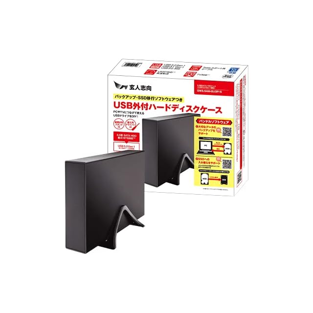1.USB3.2Gen2(10Gbps)に対応し、SATA3接続ドライブの最大速度6Gbps(理論値)で使用可能。最大16TBの大容量HDDに対応。HDDの省電力機能、TVとの接続動作も確認済み。