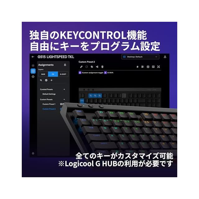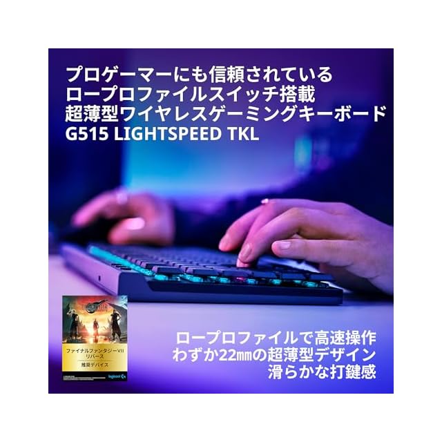 プロゲーマーにも信頼されているロープロファイルスイッチを搭載したワイヤレスゲーミングキーボード「G515 LIGHTSPEED TKL」/高速操作が可能なロープロファイルスイッチを採用/体感遅延ゼロのLIGHTSPEEDワイヤレス技術搭載/滑らかな打鍵感を提供
