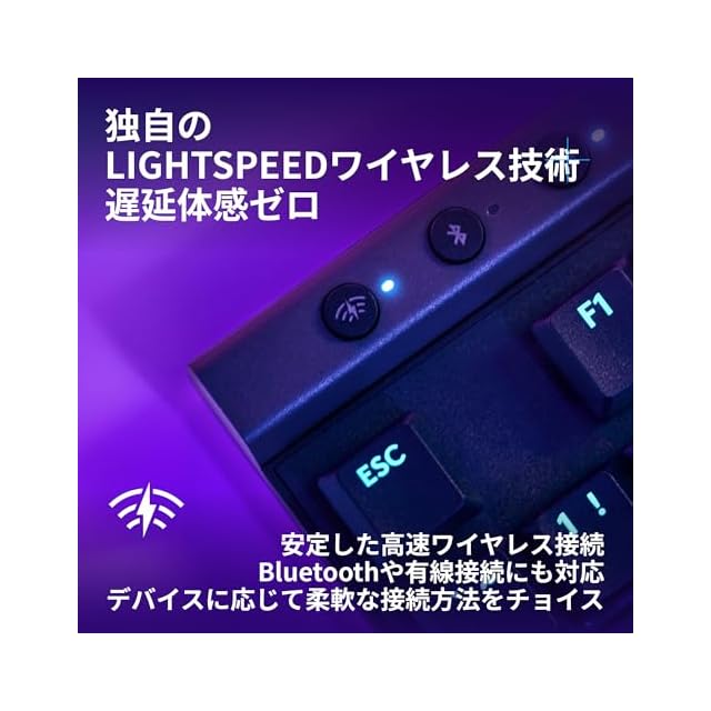 高性能ワイヤレステクノロジーLIGHTSPEEDワイヤレスレシーバー(USB)で接続/超高速の1ms応答時間、遅延体感ゼロに/BluetoothやUSBケーブルの有線接続にも対